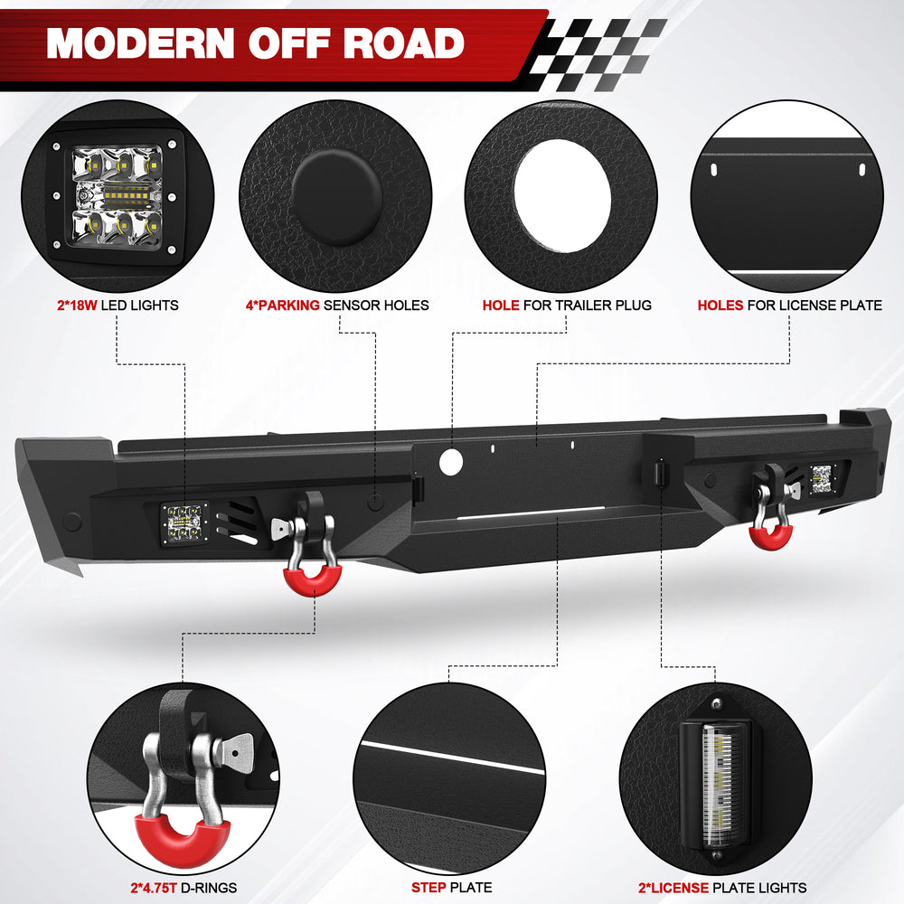 For Off-road: Equipped with two robust D-ring shackle mounts that are precisely welded onto the bumper for maximum strength, providing secure anchor points up to 4.75 tons for pulling and recovery operations. D-rings are included.