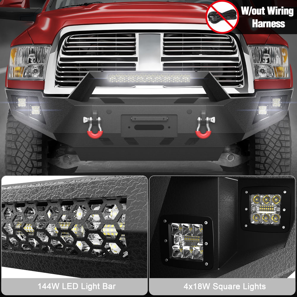 Multi-Function Integrated Design: The aftermarket bumper for Ram 2500 features a built-in winch mount plate (supporting 12,000 lbs pulling capacity) and D-ring tow points, ready for off-road/work scenarios without additional modifications.