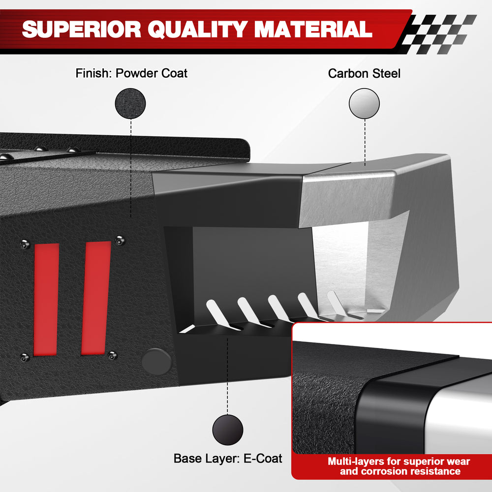 Rust Prevention: Its multi-layer textured black powder coat adds a rugged, off-road look while providing excellent rust and corrosion resistance for long-lasting performance even in harsh conditions. They resist rust for long-lasting performance, even if the coating is scratched.