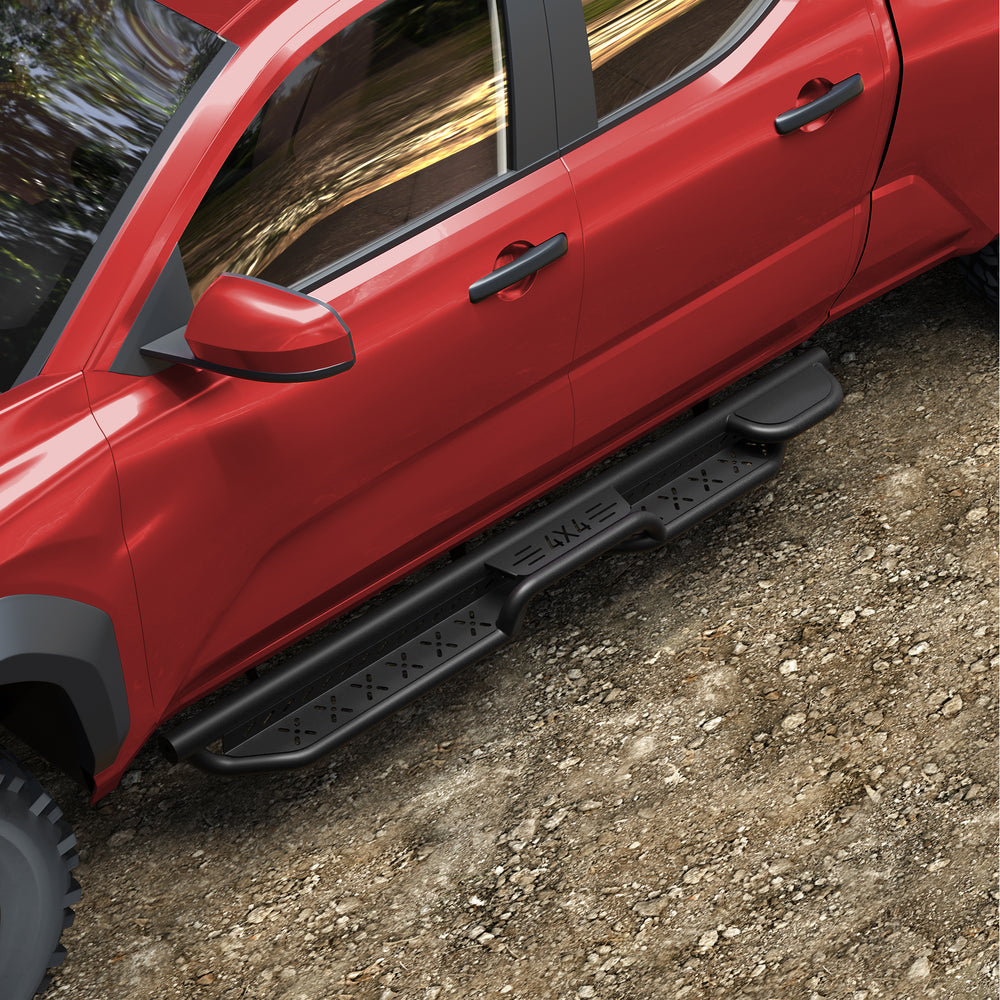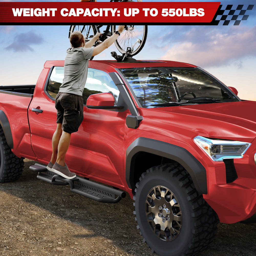 Durable Construction: Crafted from heavy-duty carbon steel with a premium black powder coating, the running boards for Tacoma offer exceptional rust and corrosion resistance. Suitable for rainy, snowy, or coastal environments.